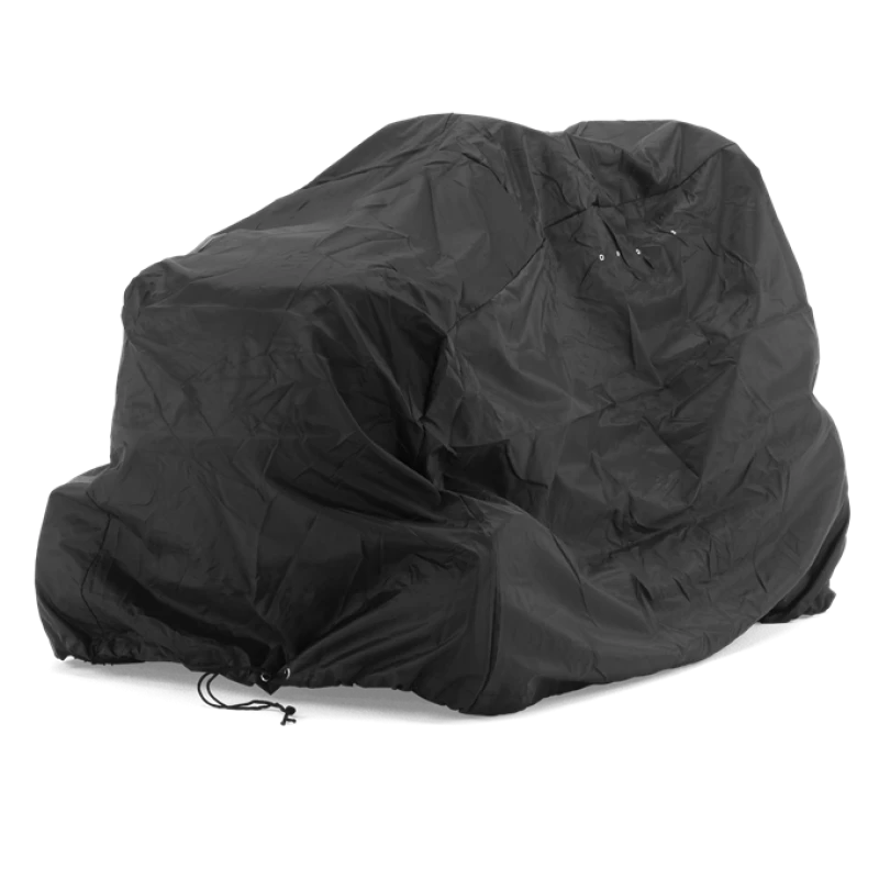 Volledig afdekzeil voor uw tractor. Gemaakt van watervast nylon. Instelbaar trekkoord aan het onderste deel plus ventilatiegaten. Past op tuintractoren met zijuitworp.