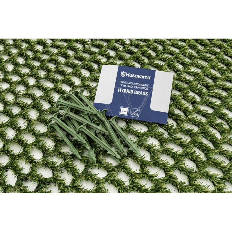 Voorkom dat de robotmaaier stopt, ronddraait en het gazon verslijt op hellingen of veel voorkomende plekken waar de mogelijkheden voor variatie van de afstand tot de voerdraad beperkt zijn. 1×1 meter hybride gras inclusief 16 groene klemmen