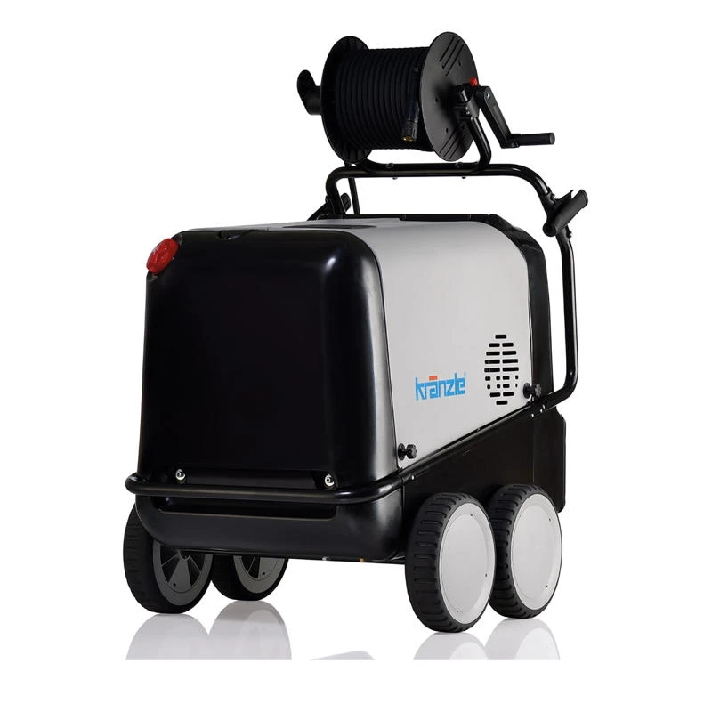 Kranzle Therm 1017 hogedruk warmwaterreiniger. De kranzle Therm 1017 beschikt over een 5,5 kW motor en is een robuuste en sterke hogedruk warmwaterreiniger voor het dagelijks schoonmaken. Tevens heeft deze reiniger een mechanische temperatuur regeling. Daarnaast heeft deze reiniger grote en sterke rubberen wielen voor het verplaatsen op ruw terrein.
